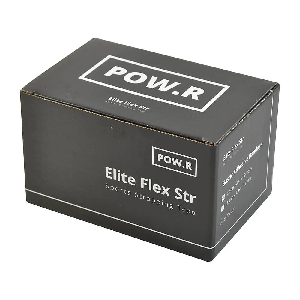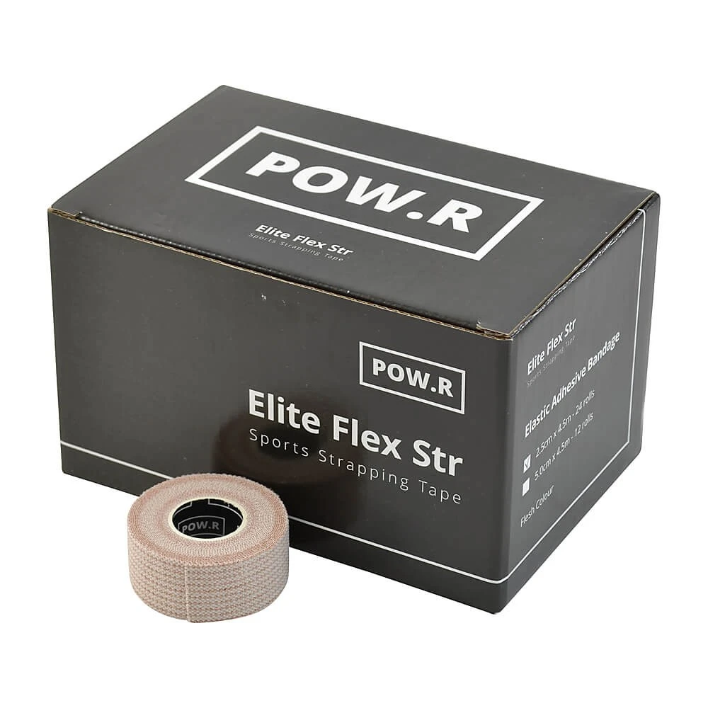 POW.R Elite Flex STR is a flexible strong elastic adhesive bandage that is used in the prevention and treatment of muscle and joint injuries. Made from a high quality German woven lengthwise elastic fabric, consisting of Approx. 61% cotton and 39% polyamide. This stretchable tape is used in both preventing injuries as well as throughout the rehabilitation process. This bandage is designed to limit the movement of joints, tendons and ligaments to prevent injury and re-injury. The tape is breathable to allow the wicking of sweating, strong to provide support and flexible to allow a normal range of movement.