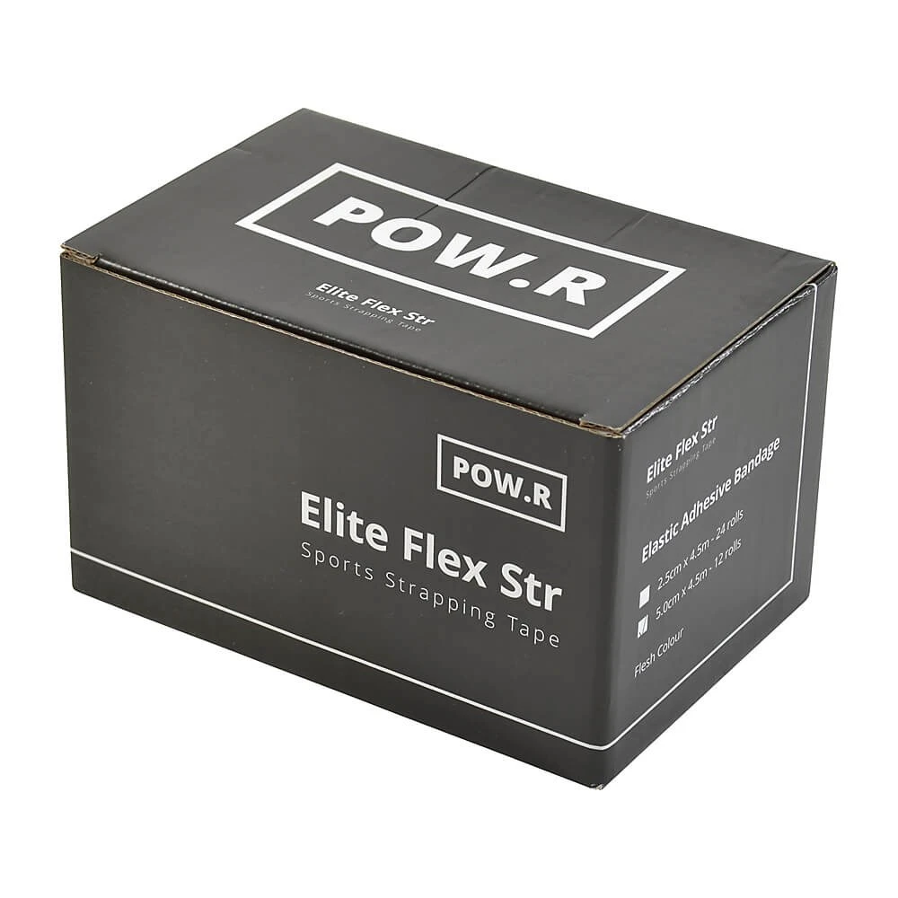 POW.R Elite Flex STR is a flexible strong elastic adhesive bandage that is used in the prevention and treatment of muscle and joint injuries. Made from a high quality German woven lengthwise elastic fabric, consisting of Approx. 61% cotton and 39% polyamide. ย This stretchable tape is used in both preventing injuries as well as throughout the rehabilitation process. This bandage is designed to limit the movement of joints, tendons and ligaments to prevent injury and re-injury. The tape is breathable to allow the wicking of sweating, strong to provide support and flexible to allow a normal range of movement.